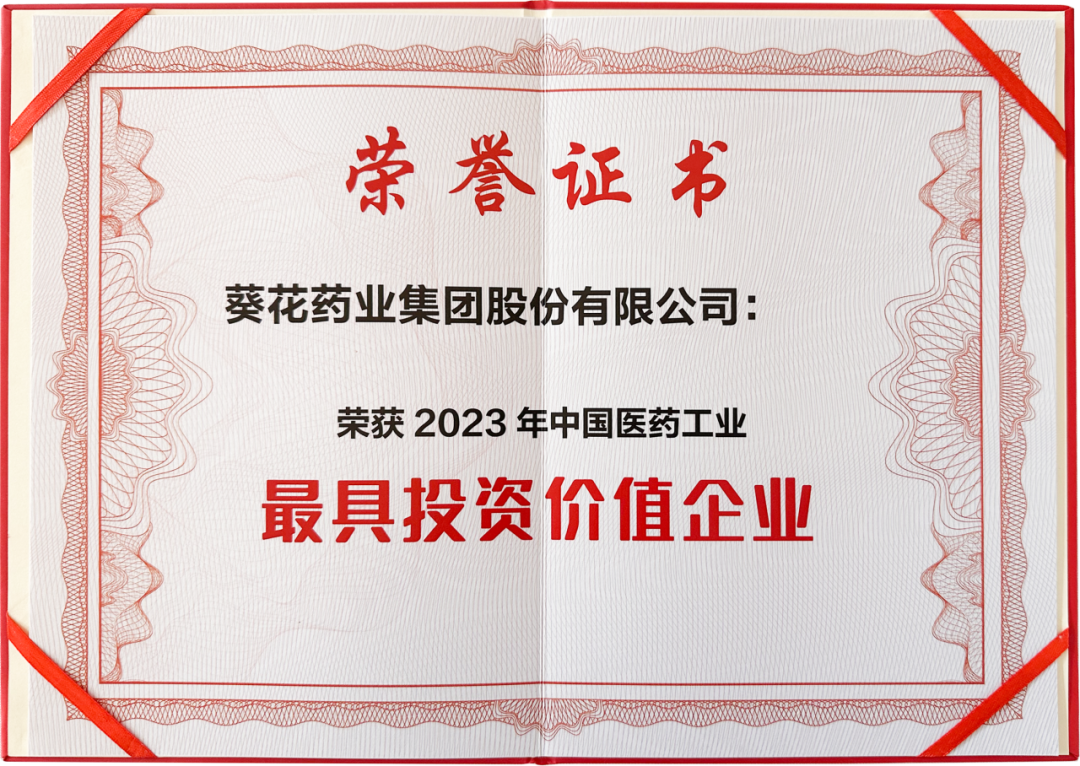 葵花藥業(yè)獲評(píng)“2023中國(guó)醫(yī)藥工業(yè)最具投資價(jià)值企業(yè)”